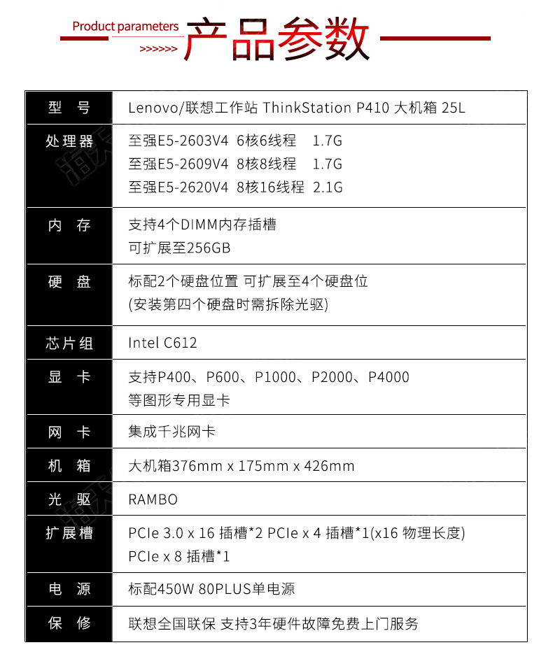 商品名称:联想/lenovo 图形工作站ThinkStation P410 E5-2603V4/8G/1T/P600 2G显存(可选P400P1000P2000P4000P5000)