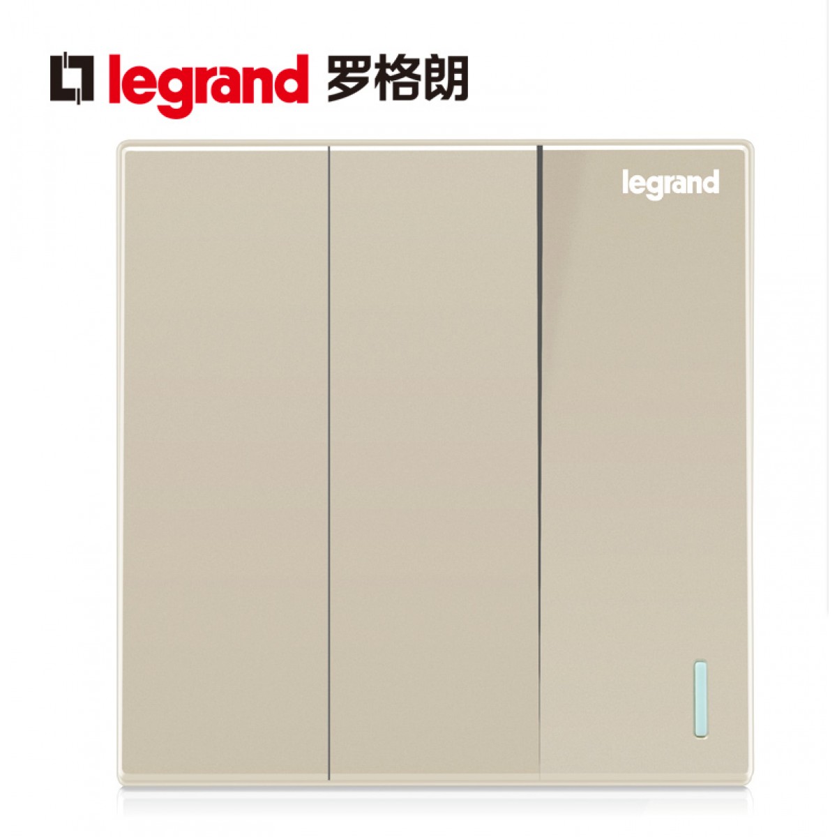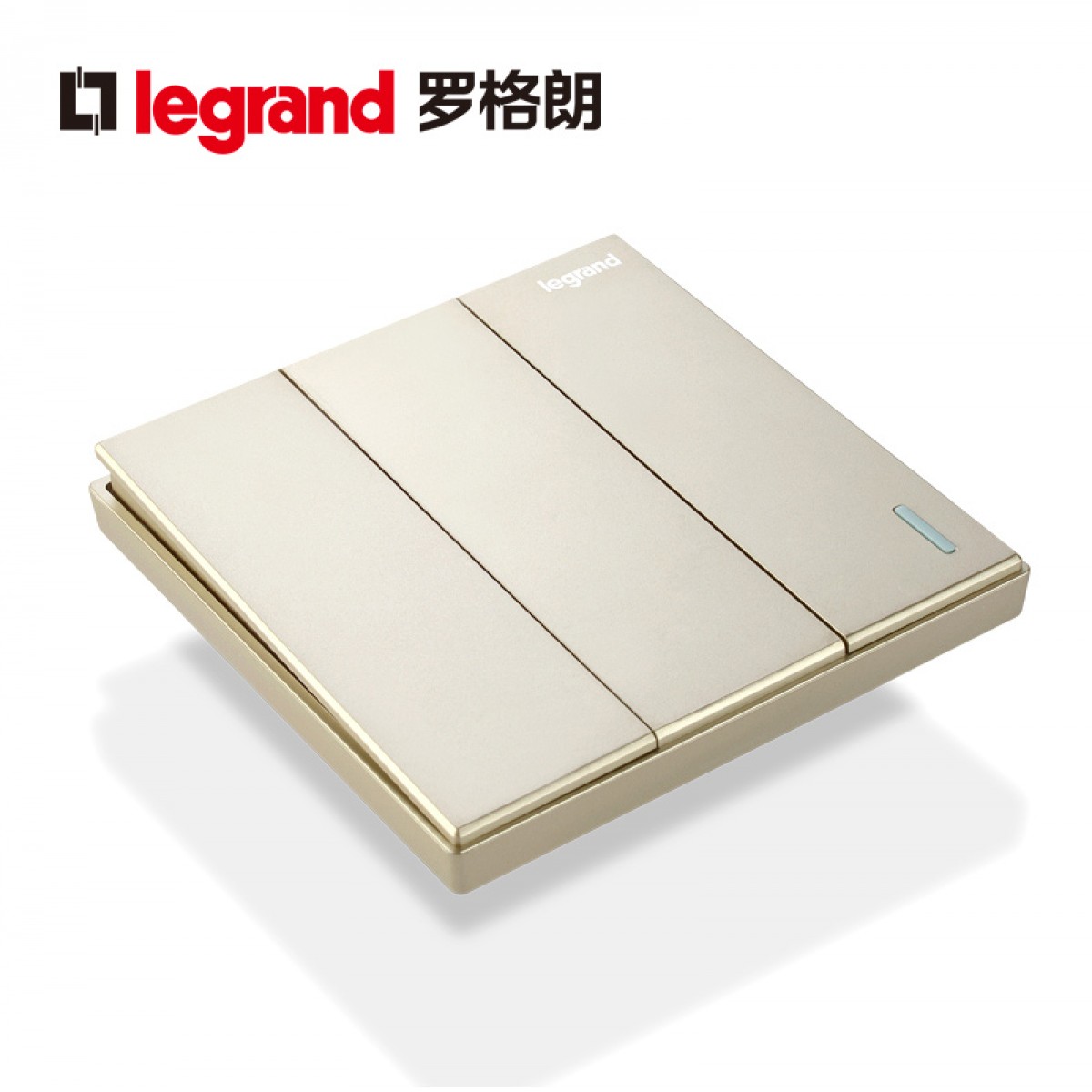 商品名称:罗格朗 大面板家用三联双控3开三位双控三开双控开关86型香槟金