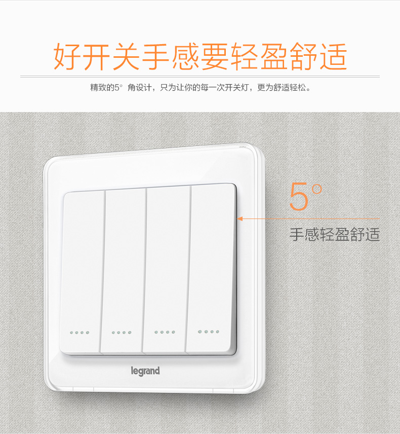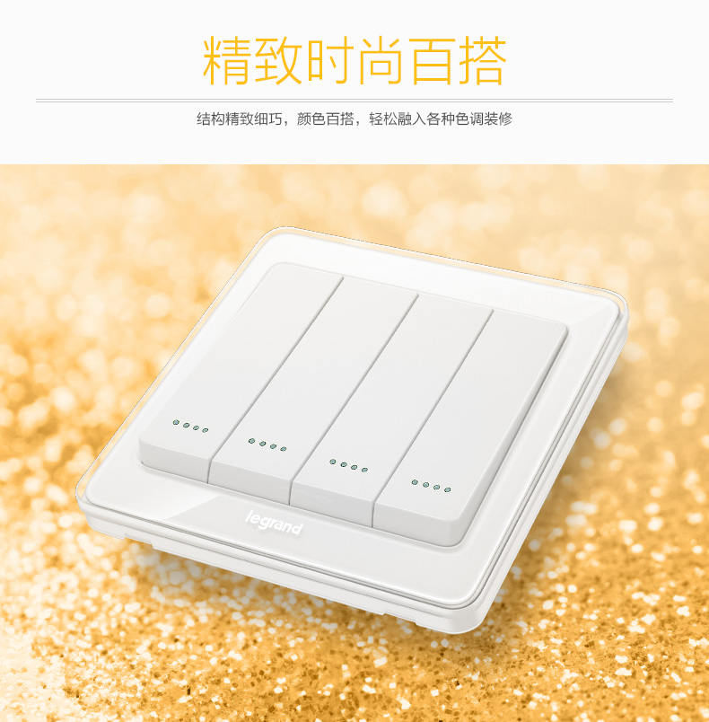 商品名称:罗格朗 开关插座开关插座面板86型冰莹白四开双控荧光面板