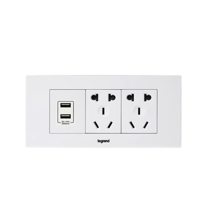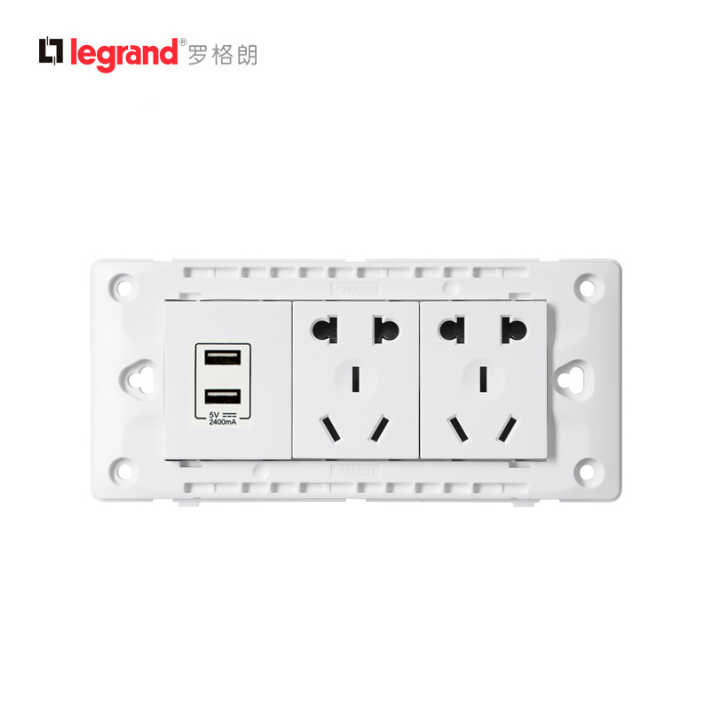 罗格朗 二三插五孔带USB开关插座面板86型墙壁充电双口家用暗装