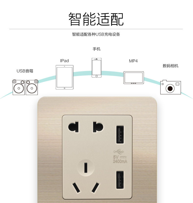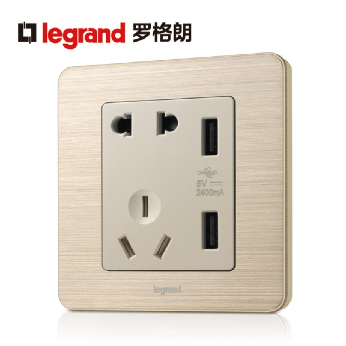 商品名称:罗格朗 逸典金色五孔带USB开关插座面板86型墙壁充电双口家用