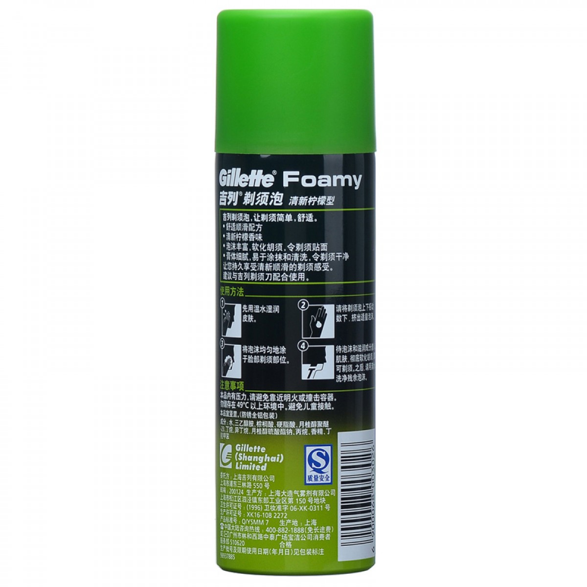 产品名称:吉列清新柠檬型剃须泡沫组合三瓶