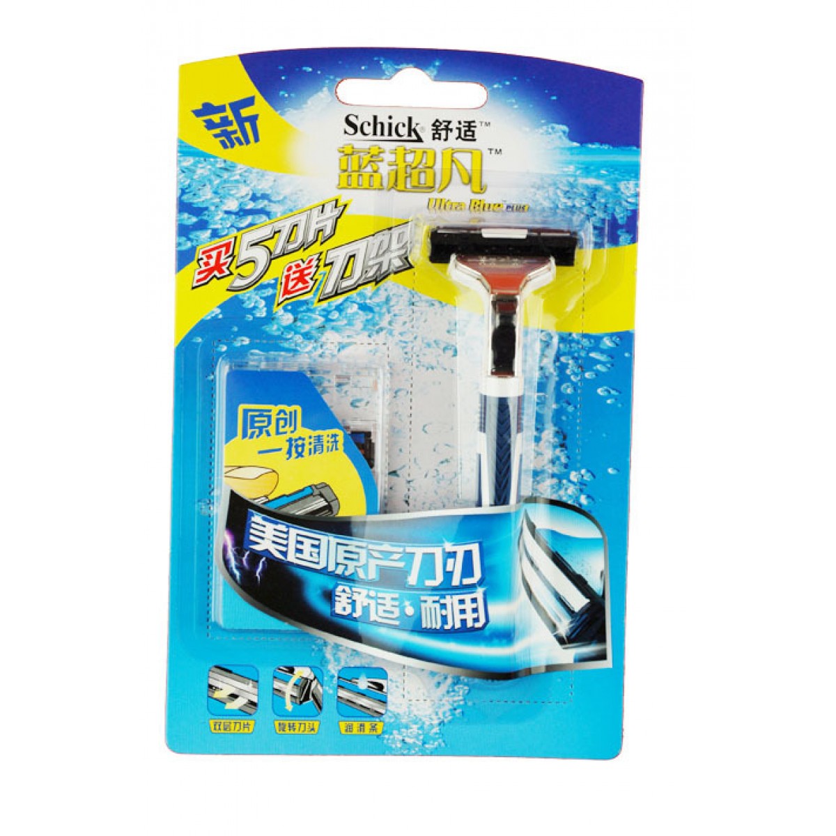商品名称:舒适/Schick 蓝超凡剃须刀架含5刀片 男士手动刮胡刀双层润滑刀
