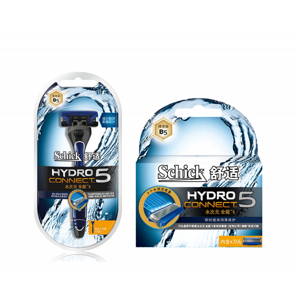 Schick/舒适 水次元剃须刀片4片 hydro connect五层刮胡刀片兼容手动