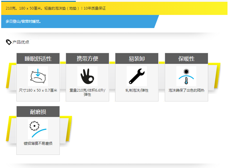 商品名称:迪卡侬 Foam Sleeping Mat 专业铝膜防潮垫/单人野营垫 M100