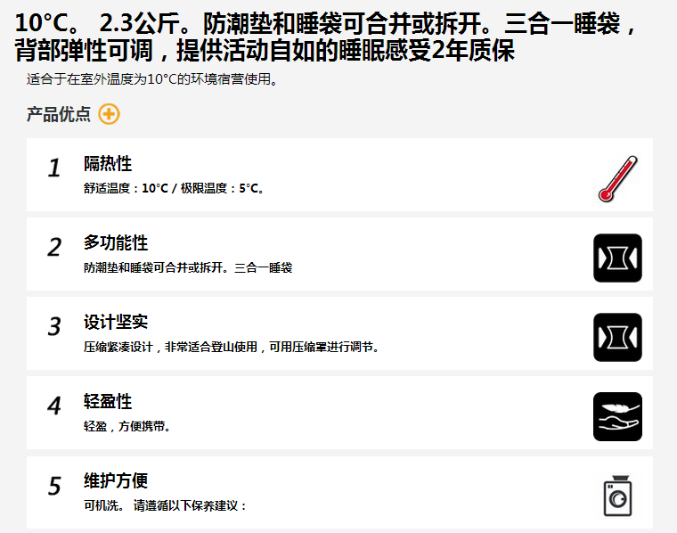 商品名称:迪卡侬 Sleepin'Bed 10度Light一体式睡袋加自充气垫套装野营睡袋