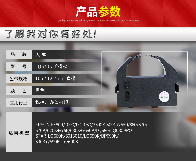 商品名称:天威 LQ670K 色带芯条