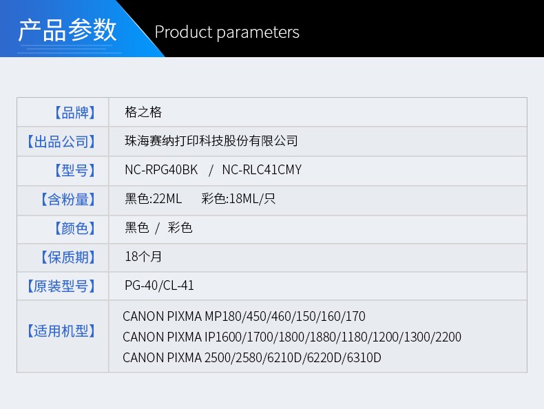商品名称:格之格 PG-40 墨盒适用canon ip1180 ip1880墨盒 MP198 cl141
