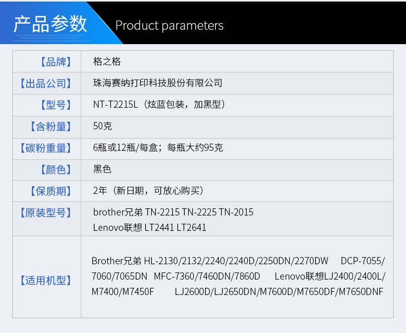 商品名称:格之格 T2215L 碳粉
