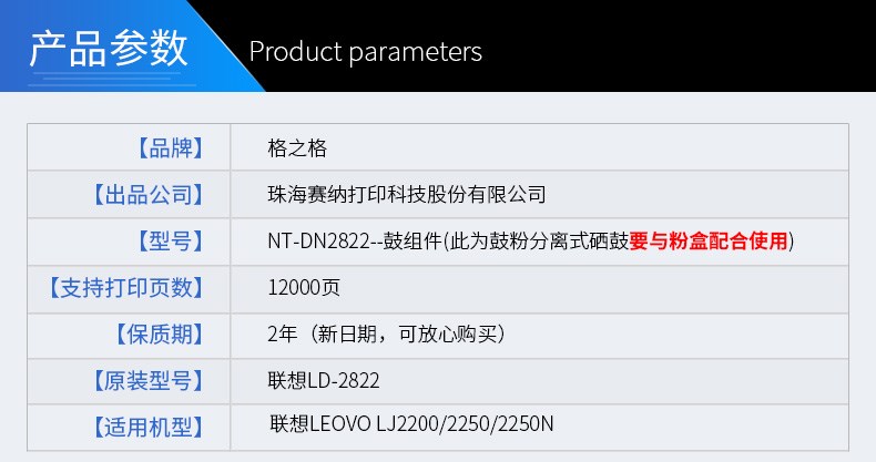 商品名称:格之格 LD-2822 鼓架 适用联想LEOVO LJ2200 2250 2250N硒鼓 组件