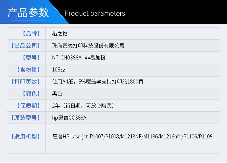 商品名称:格之格 0388A 激光打印机硒鼓通用惠普HPM1136 M1213NF粉盒 hp1106大容量装墨盒