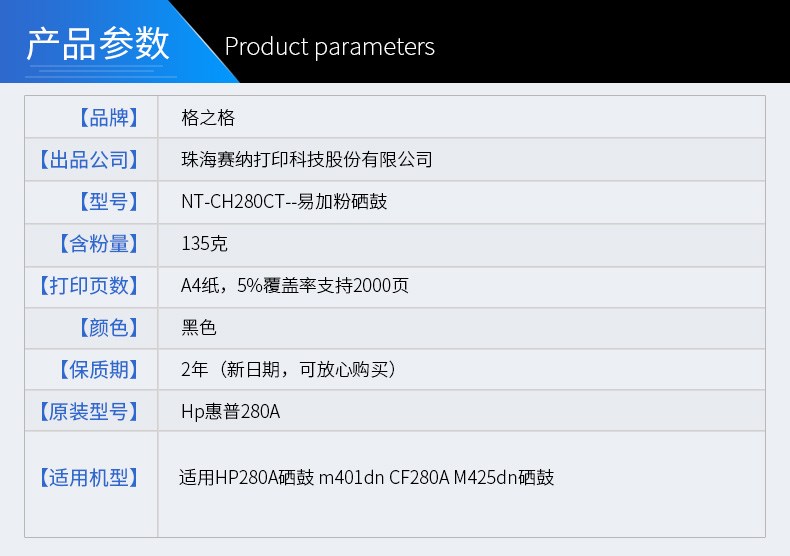 商品名称:格之格 280CT 硒鼓m401dnCF280A粉盒M425DW激光打印机墨盒