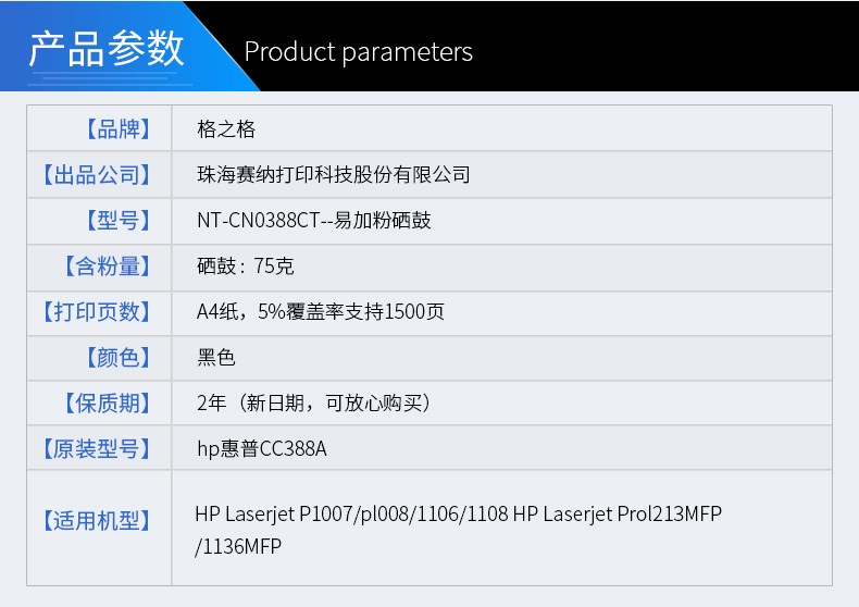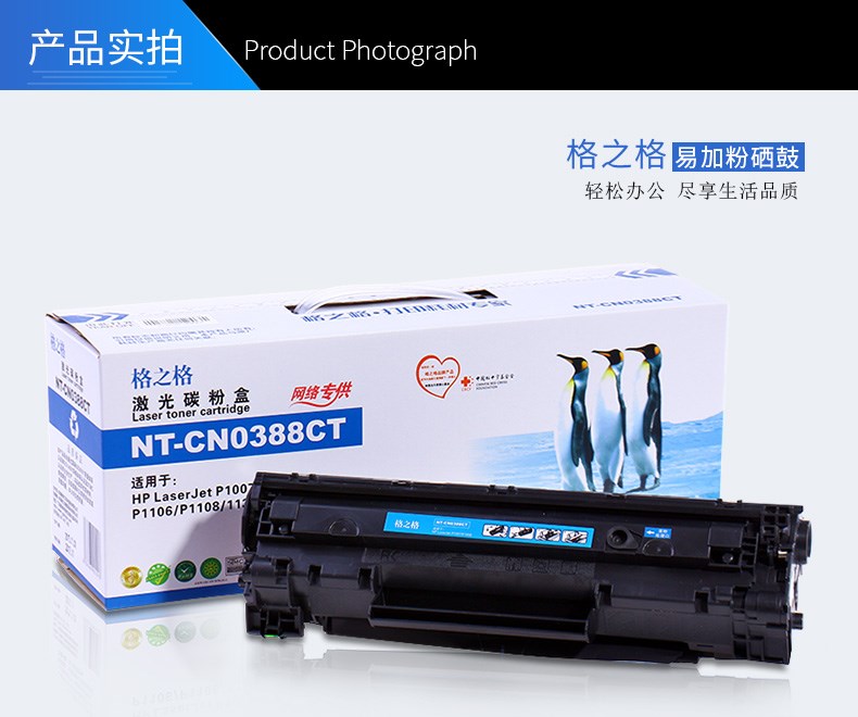 商品名称:格之格 0388CT 易加粉适用CC388A硒鼓p1007 1008 M1216nf 1108 打印机墨盒粉盒