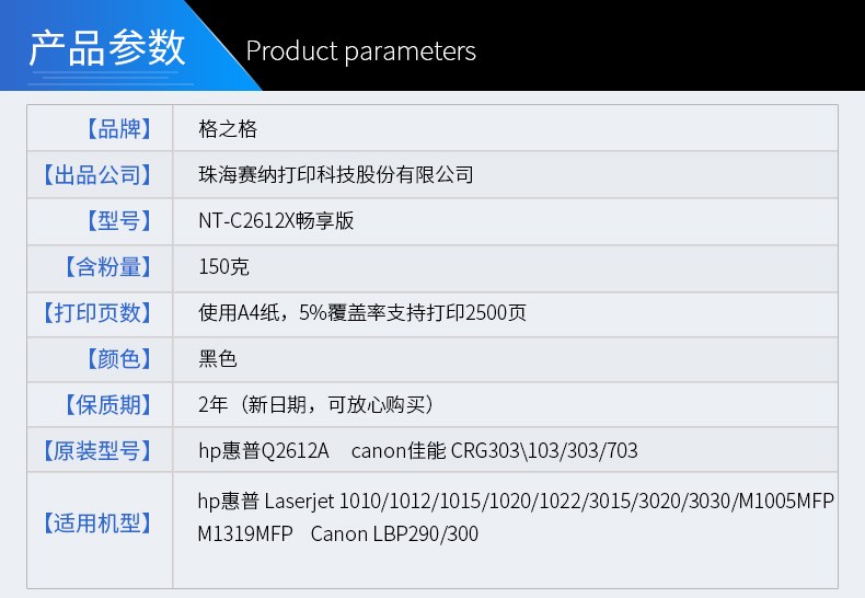 商品名称:格之格 c2612x 适用 hp12a 惠普m1005 hp1020 hp1022 2612a 打印机硒鼓