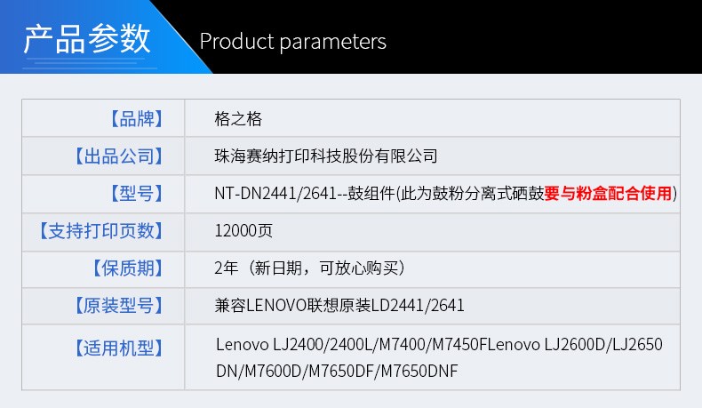 商品名称:格之格 LT2441 粉盒适用联想M7400硒鼓 LD2641 LJ2400L M7650