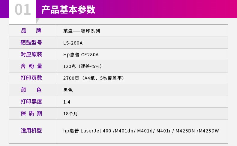 商品名称:莱盛 hp80A 打印机粉盒适用hp280CF280AM401DNM425dnHP400打印机