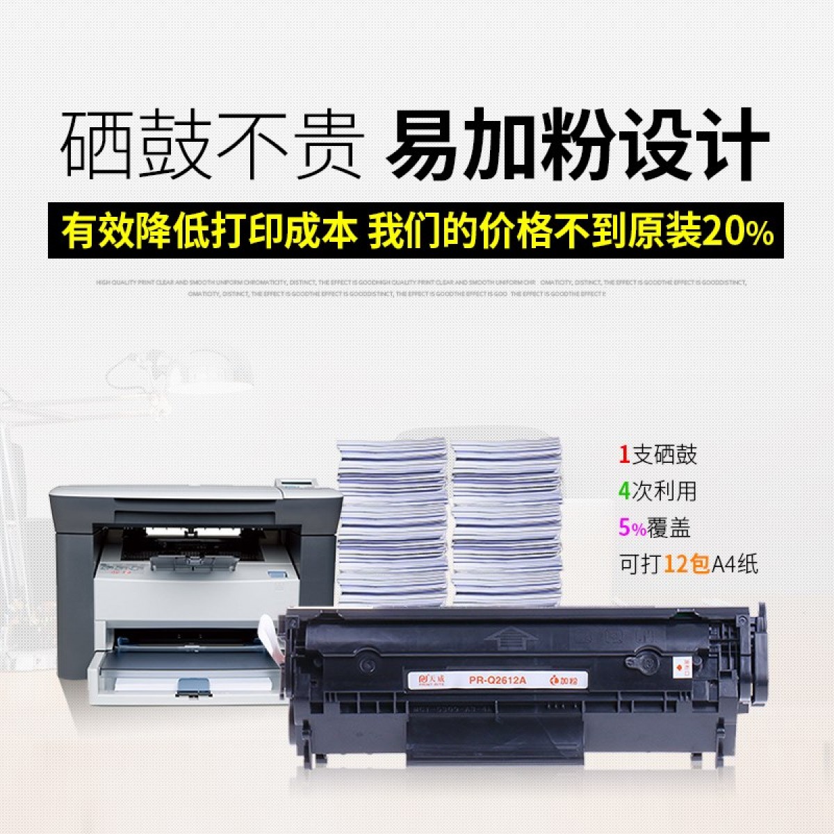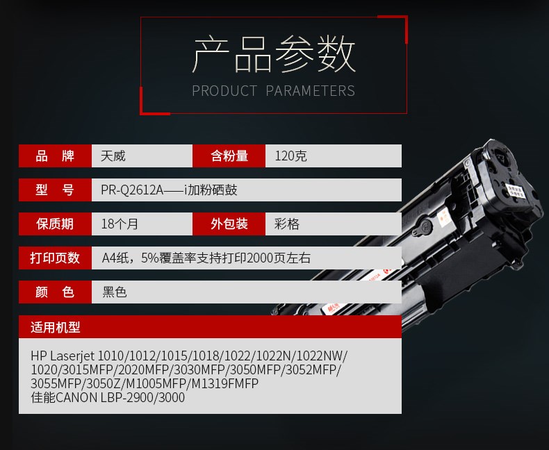 天威适用易加粉HP12A硒鼓HP1020 M1005 1010 1012 1018 1022 1319 3050 3055 Q2612A打印机lbp2900 3000墨盒