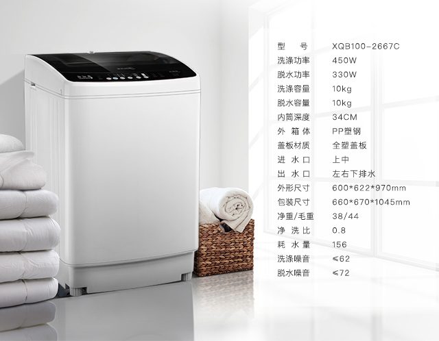 商品名称:吉德 10公斤大容量全自动波轮洗衣机 XQB100-2667C