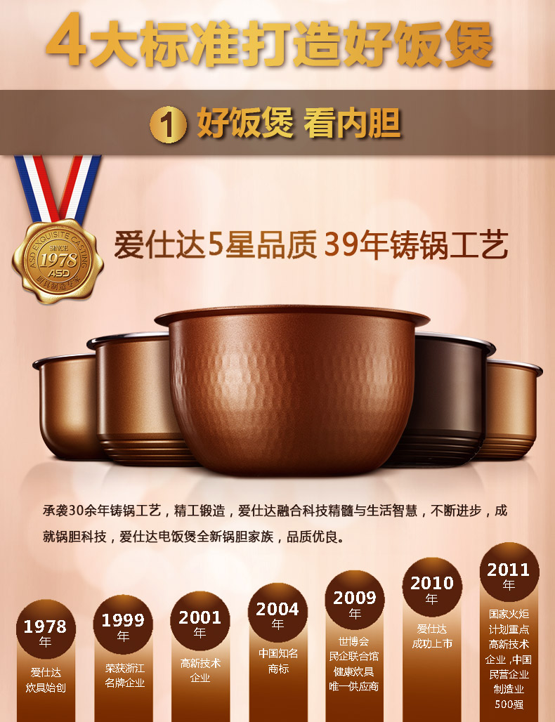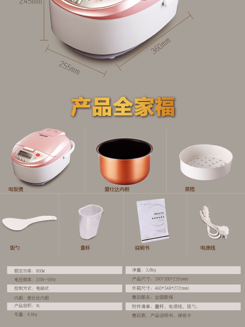商品名称:爱仕达 AR-F4018EDW 智能预约定时4l电饭煲电器