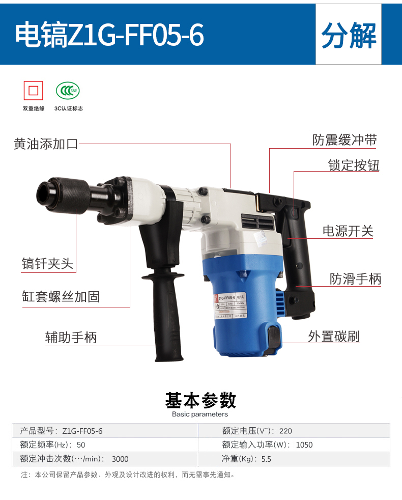 商品名称:东成 工业级电镐单用 大功率专业开槽拆墙混凝土电锤镐 Z1G-FF05-6