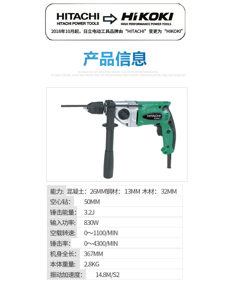 商品名称:日立 电动工具冲击钻多功能四坑锤钻两用调速轻型电锤手电钻 DH26PB