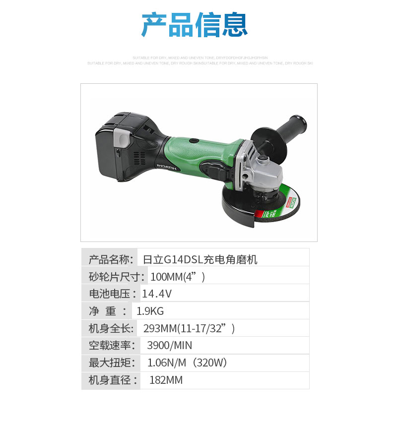 商品名称:日立 充电角磨机磨光机14.4V双锂电池电动切割机 G14DSL