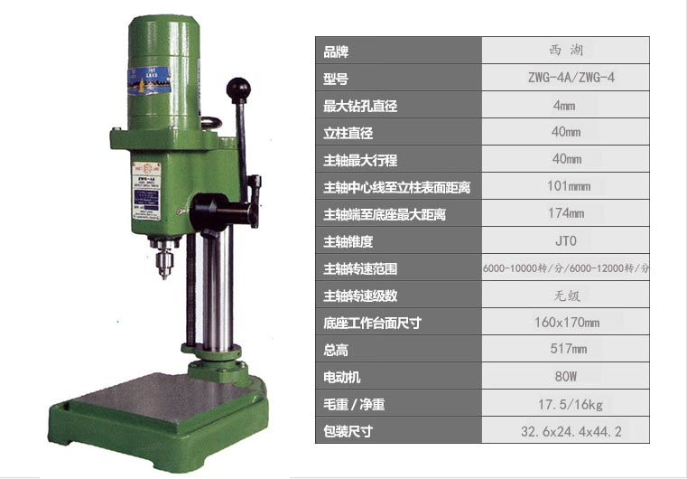 商品名称:西湖台钻 高速台钻迷你小型家用220V钻床 ZWG-4/ZWG-4A