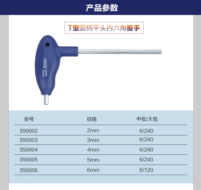 商品名称:长城精工 内六角扳手T型平头内六角L型内六方扳手六角六棱扳手 350005