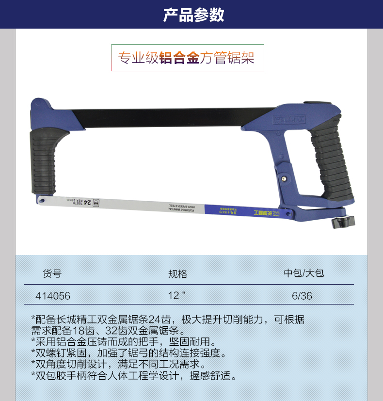商品名称:长城精工 钢锯架/钢锯条可调节式锯弓铝合金管固定锯架手锯手锯条 414933