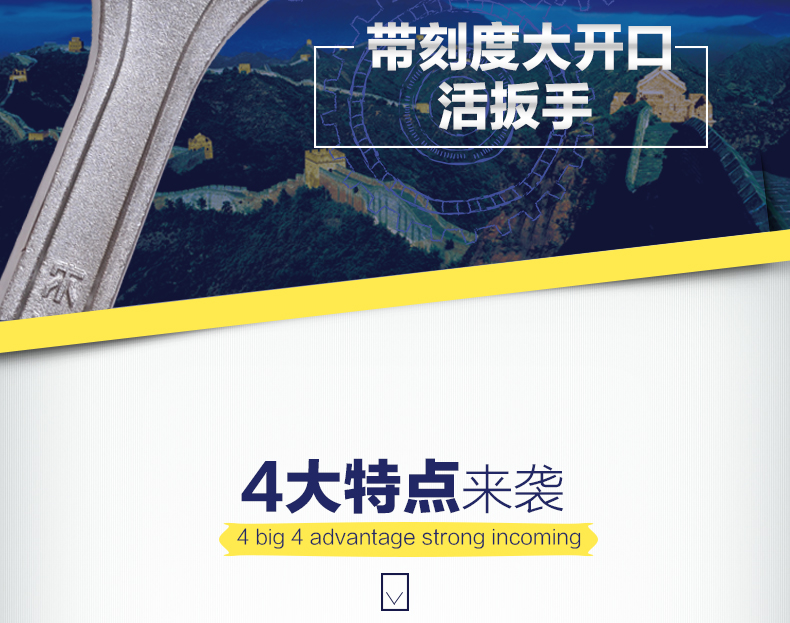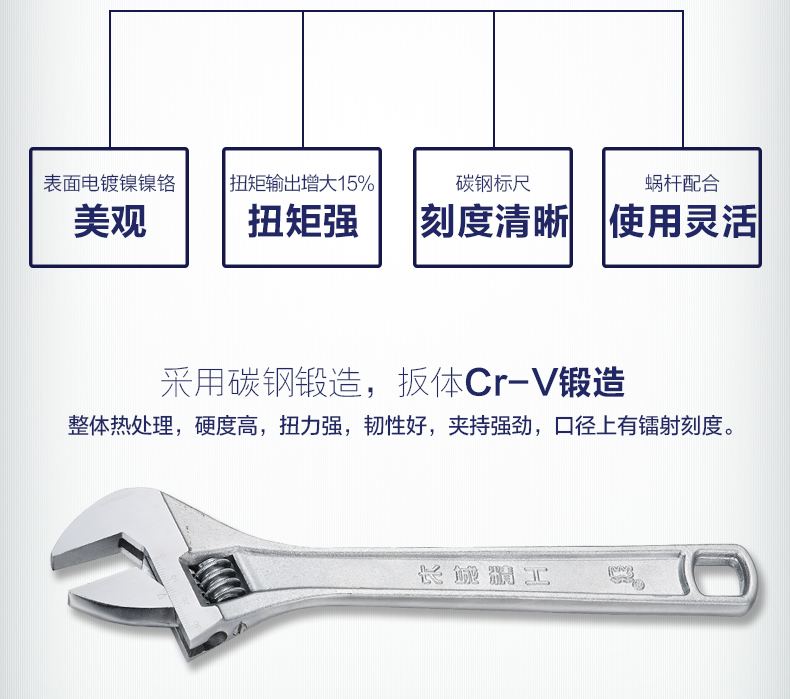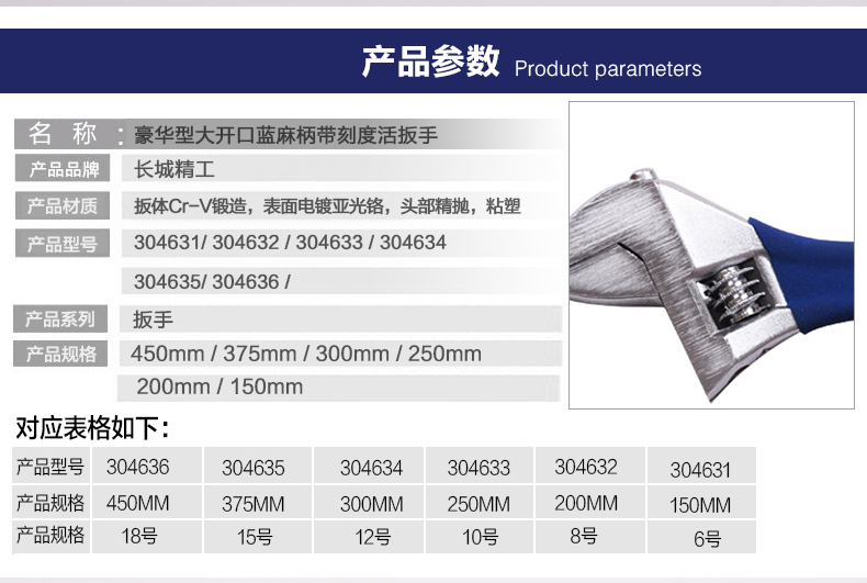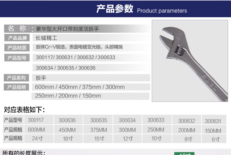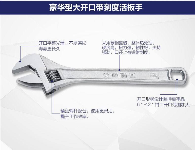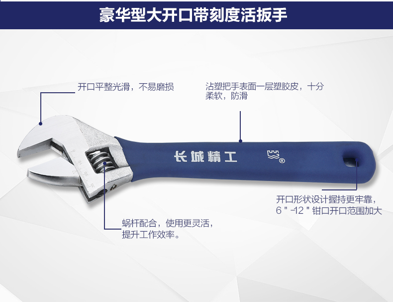 商品名称:长城精工 活动扳手大开口带刻度活扳手多规格活络扳手活头活口扳子 300117