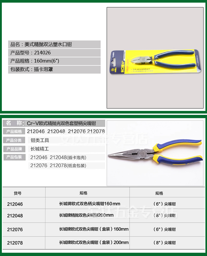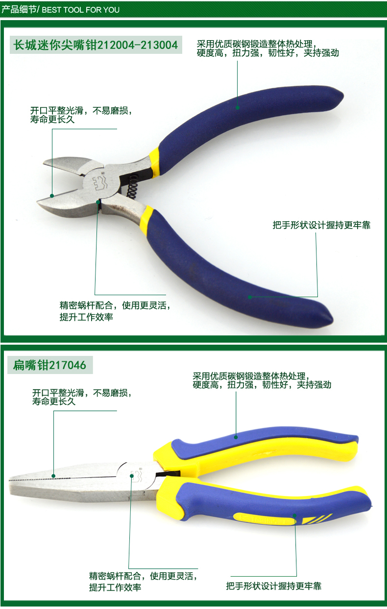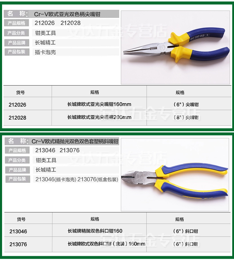 商品名称:长城精工 钳子双色塑柄老虎钳多规格斜嘴钳水口钳尖嘴钳迷你小钳子 211028