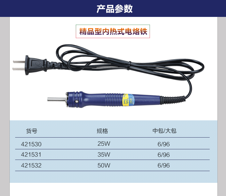 商品名称:长城精工 电烙铁35W50W内热式尖头烙铁电子维修焊接工具长寿命烙铁 421531