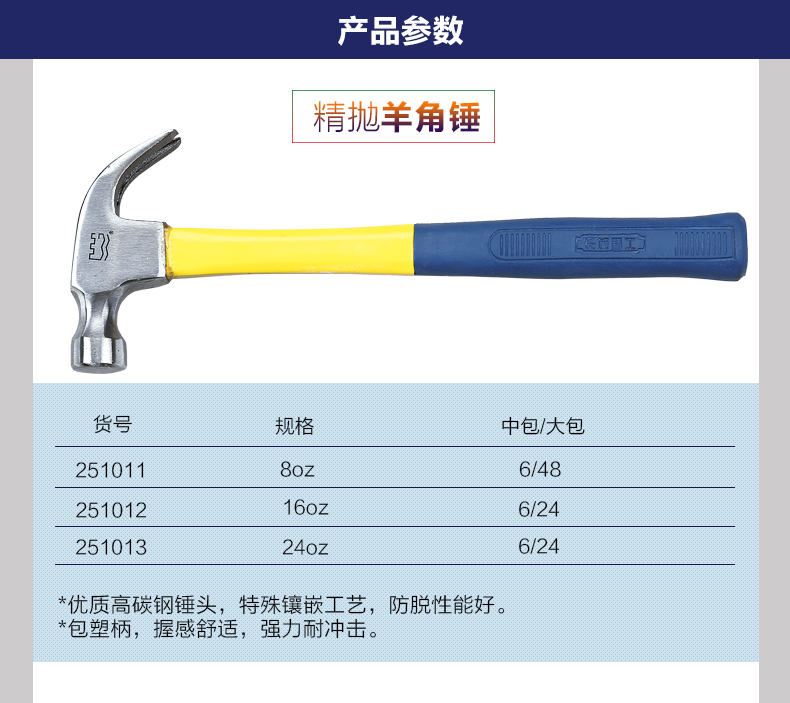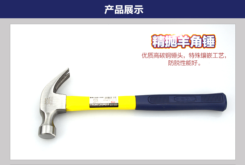 商品名称:长城精工 羊角锤纤维柄起钉锤多规格羊角锤头木匠榔头钉夹锤钉锤 251011