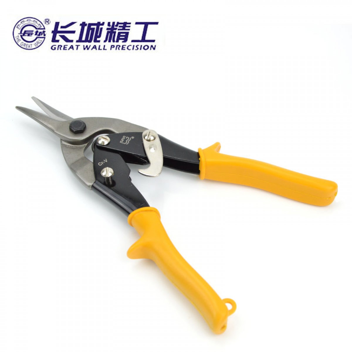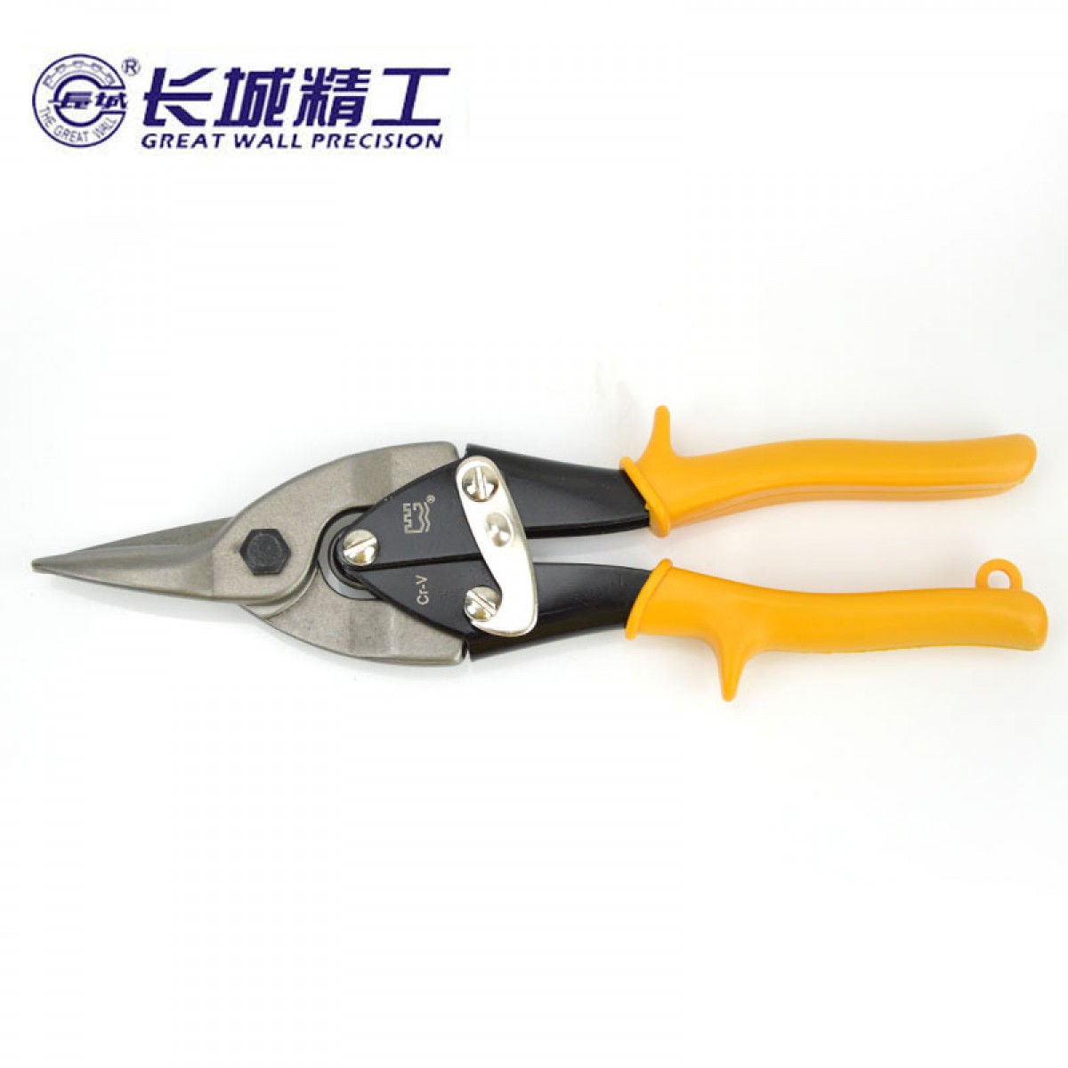 长城精工 铁皮剪镀镍合金彩柄直口航空剪剪切金属板材铁皮剪刀铁剪 410512
