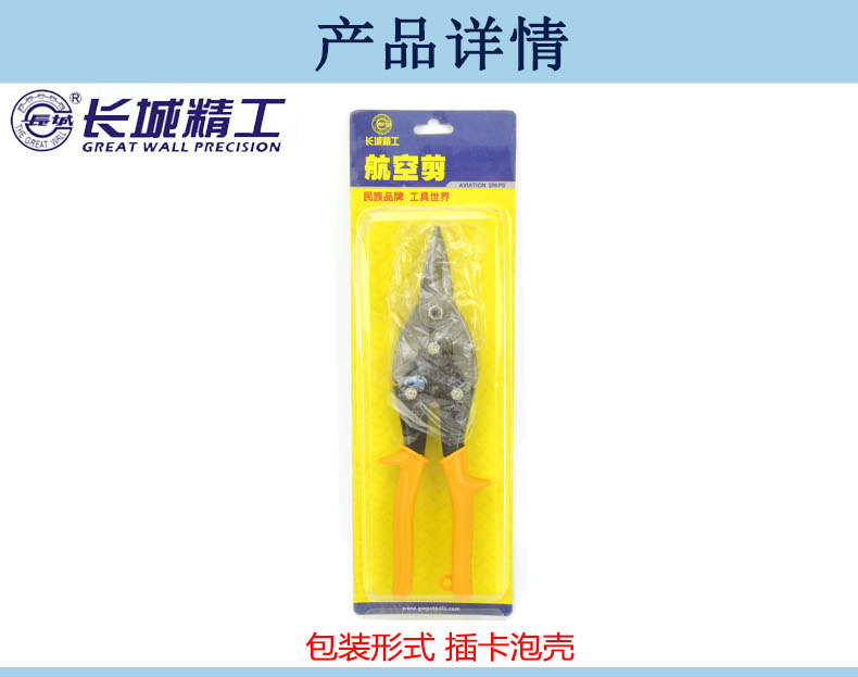商品名称:长城精工 铁皮剪镀镍合金彩柄直口航空剪剪切金属板材铁皮剪刀铁剪 410512