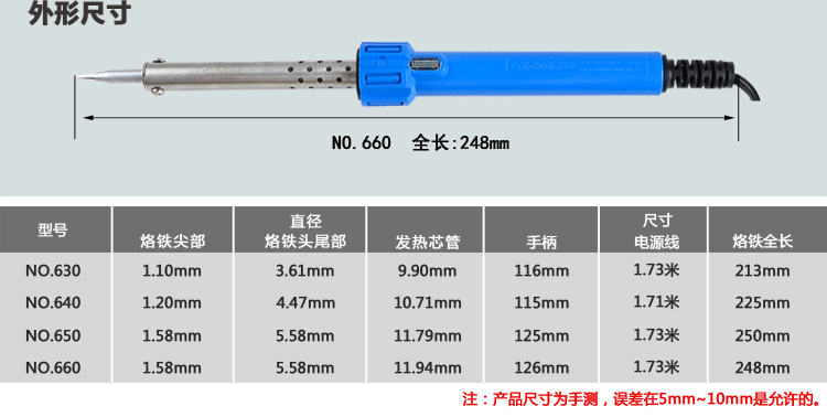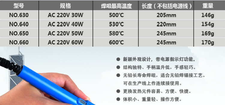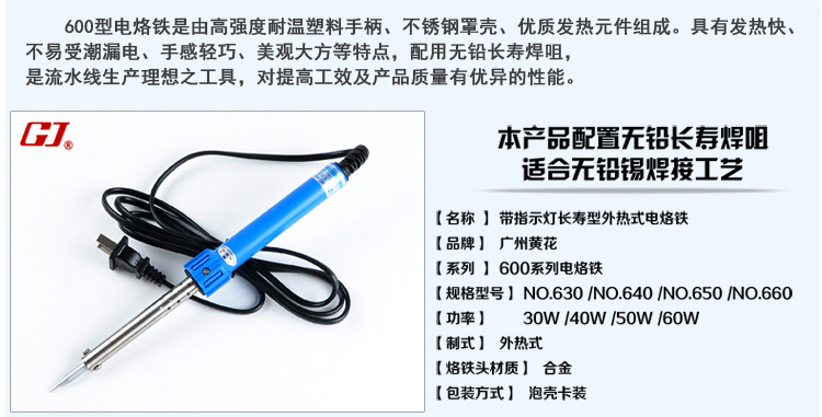 商品名称:黄花牌 外热式电烙铁 长寿命带指示灯 NO.630/640/650/660
