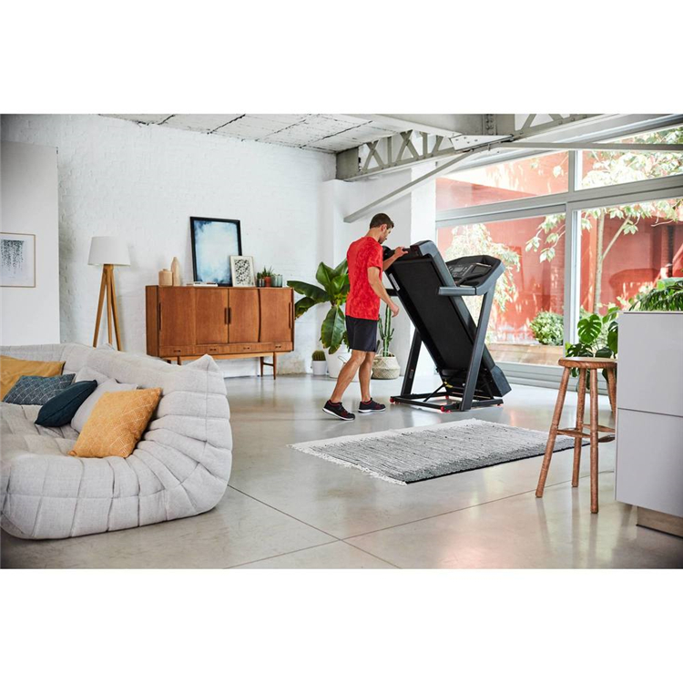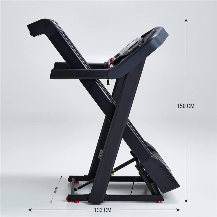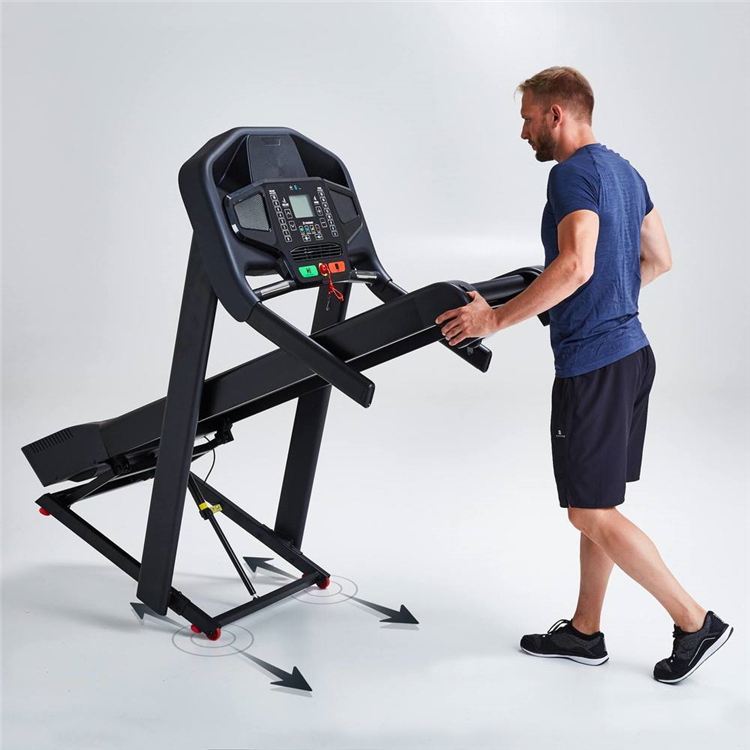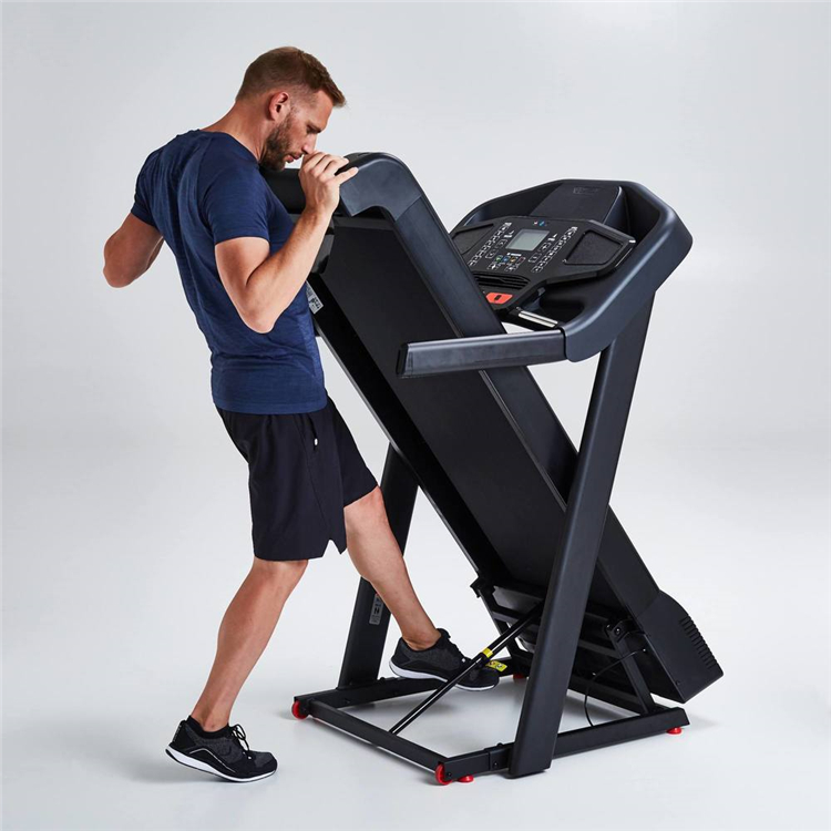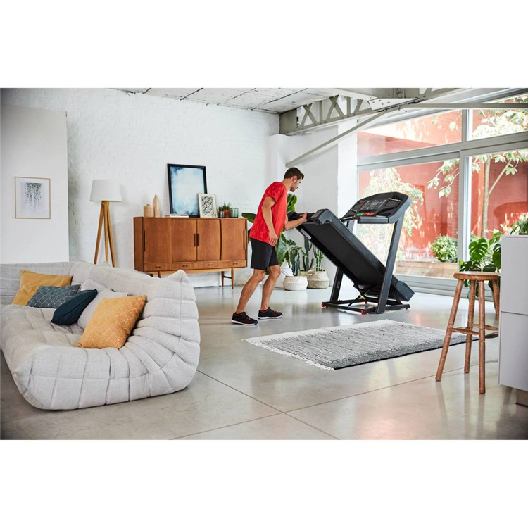 不使用时,可将 T900A 跑步机折叠起来,节省空间。折叠后,只需占据