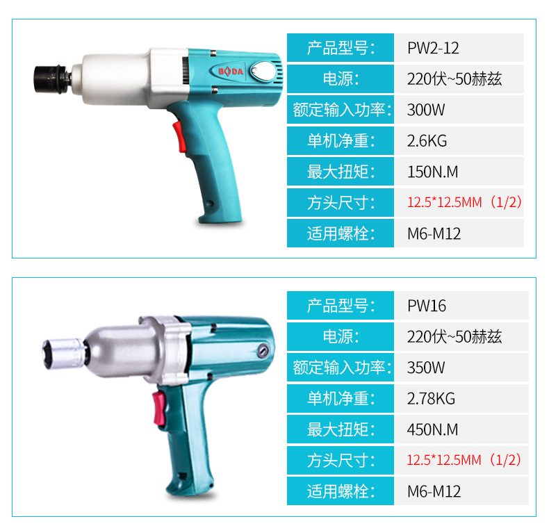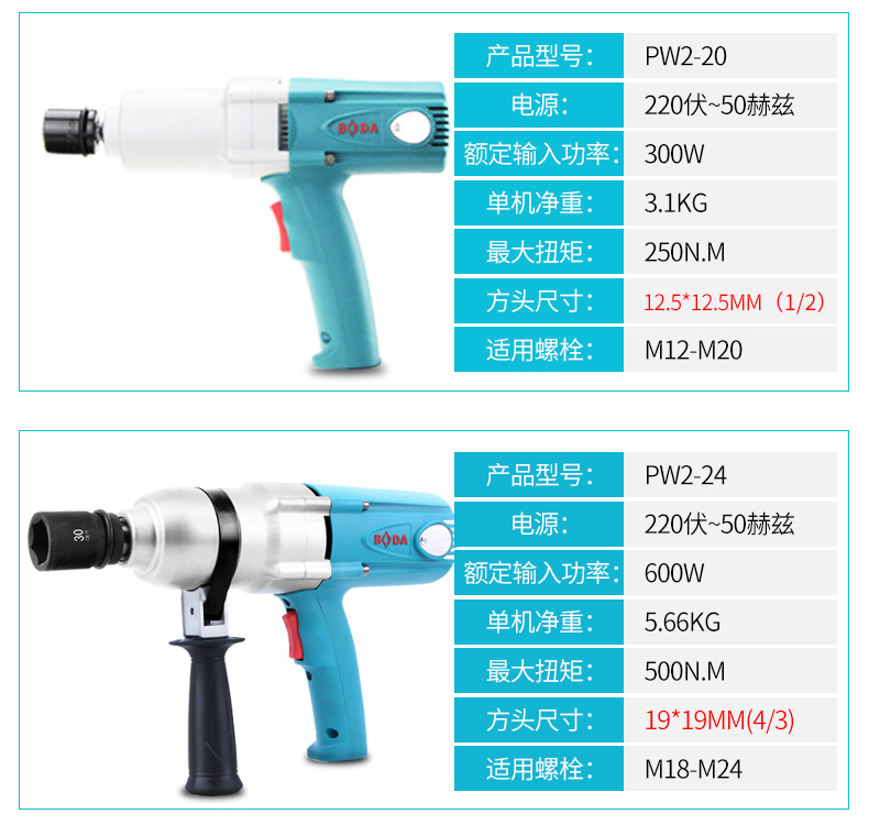 商品名称:博大 电动冲击扳手风炮机套筒正反转电动螺丝拆卸安装工具电板手 PW2-24