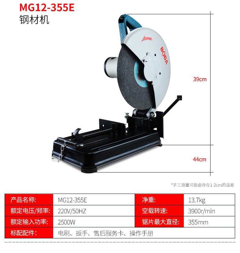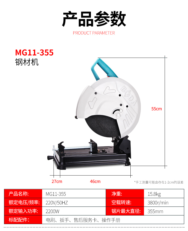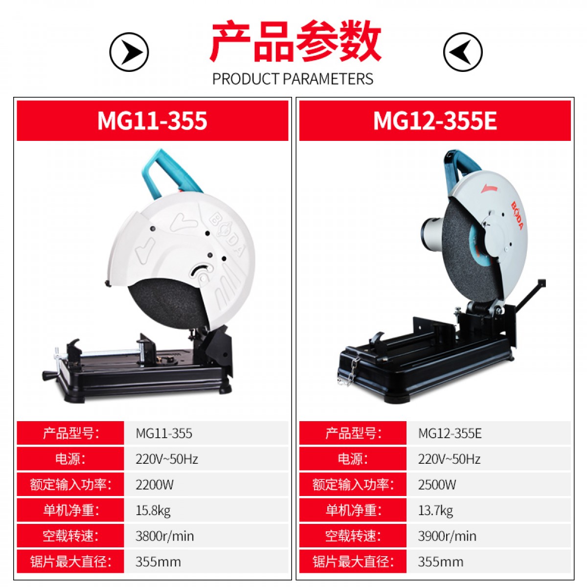 商品名称:博大 钢材切割机355大功率台式型材切管五金无齿锯单相220v家用 MG11-355