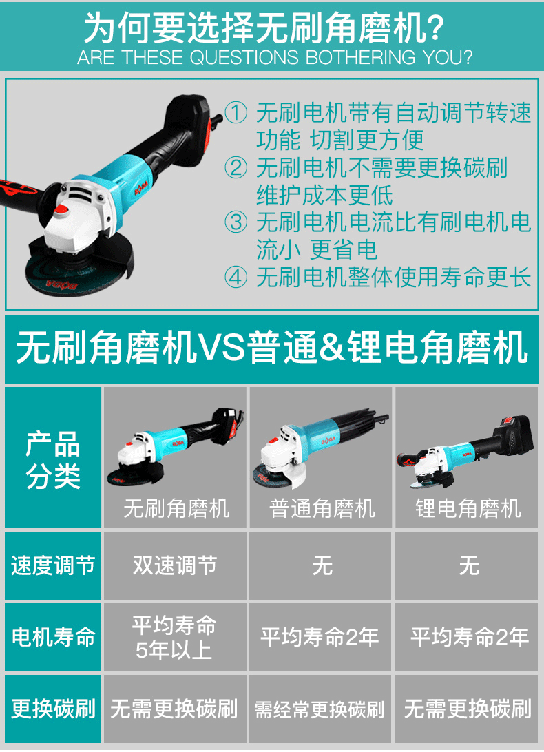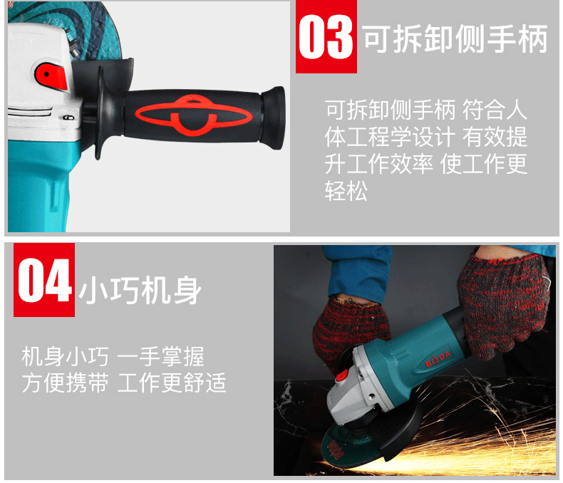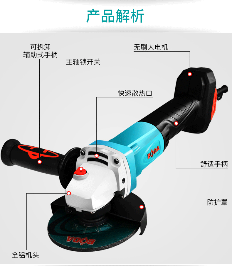 商品名称:博大 无刷角磨机多功能家用抛光机工业级切割机打磨机角向磨光机 BLG1-100