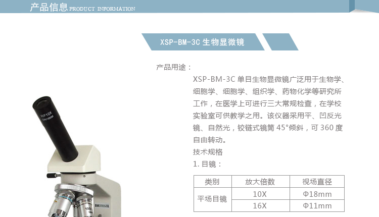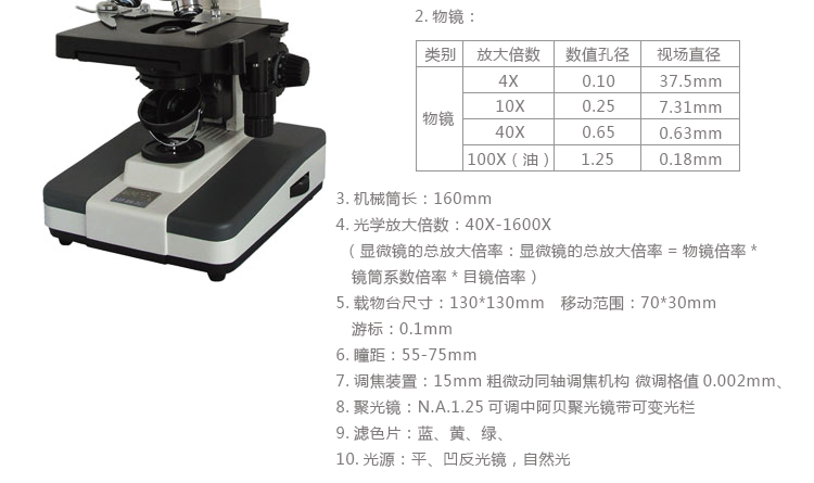 商品名称:垒固 生物显微镜 XSP-BM-3C(单目)