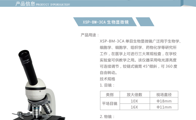 商品名称:垒固 生物显微镜 XSP-BM-3CA(单目)