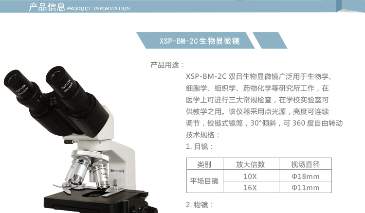 商品名称:垒固 生物显微镜 XSP-BM-2C (双目)