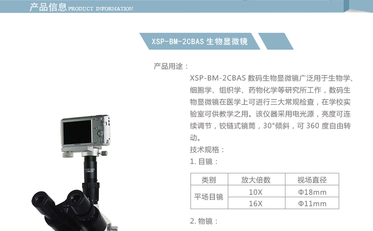 商品名称:垒固 生物显微镜 XSP-BM-2CBAS(数码)