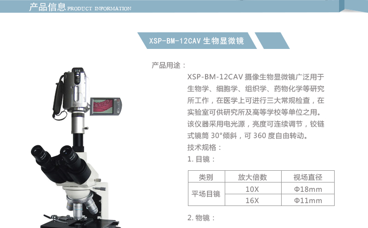 商品名称:垒固 生物显微镜 XSP-BM-12CAV(摄像)
