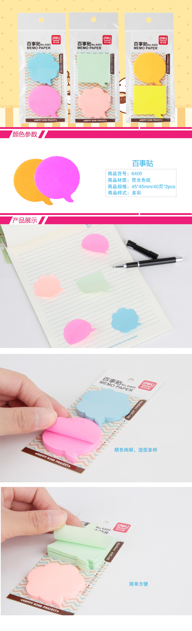 商品名称:得力 卡通百事贴 6405 百事贴N次贴可重复粘贴彩色便条纸标注贴