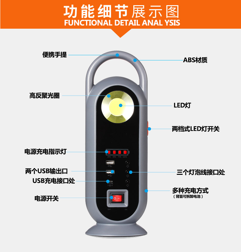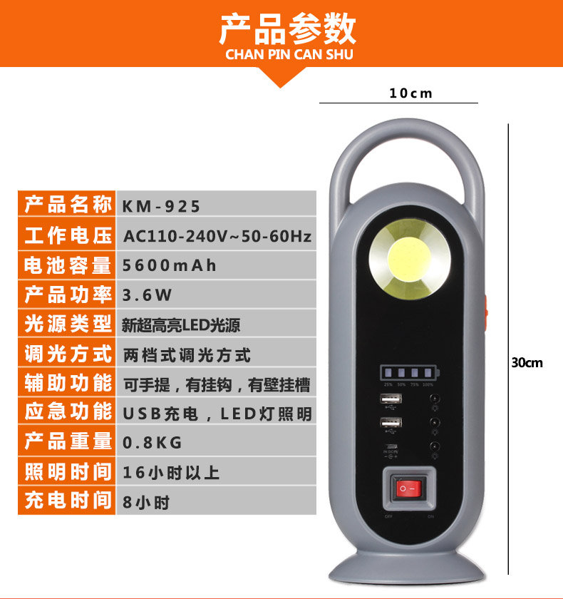 商品名称:国产 led应急灯家用停电照明充电备用灯大容量锂电池蓄电夜市停电神器 DLD-KM-925