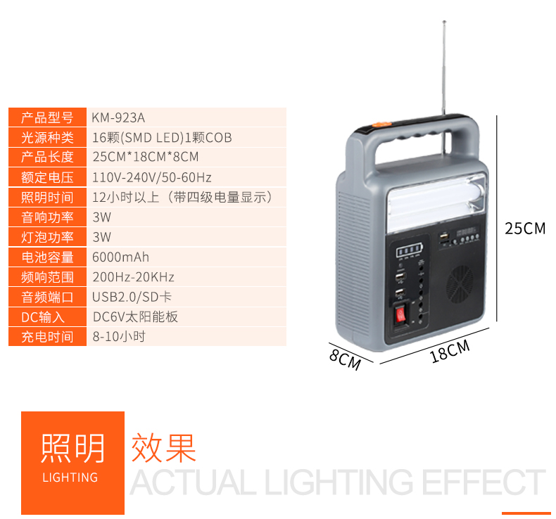 商品名称:国产 led应急灯家用充电灯泡多功能移动电源停电神器超亮照明灯太阳能 KM-923A