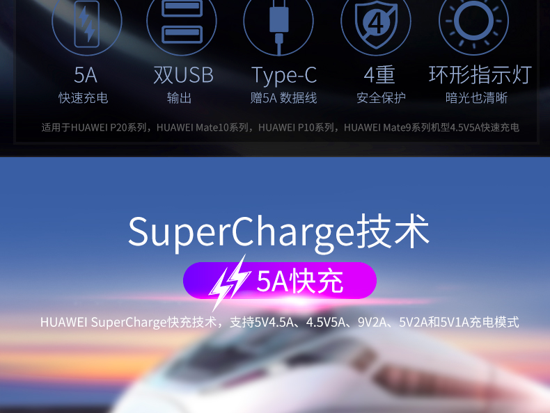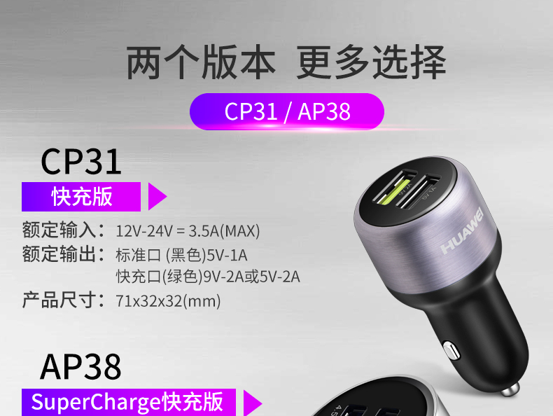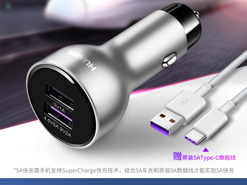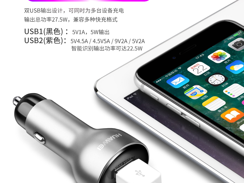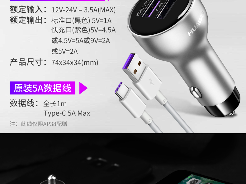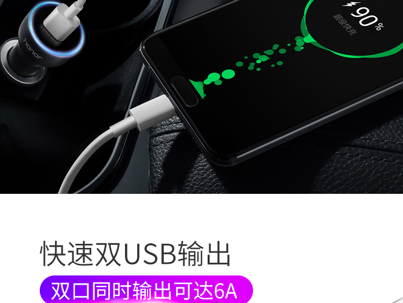商品名称:华为/Huawei 5A车载充电器手机快充通用点烟器USB一拖二