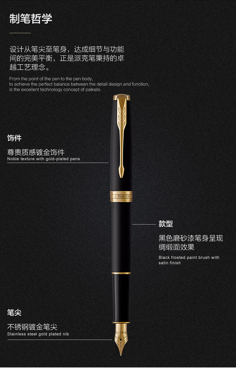 商品名称:Parker/派克 卓尔钢笔磨砂黑金夹男士商务办公送礼签字墨水笔